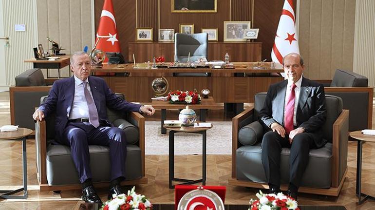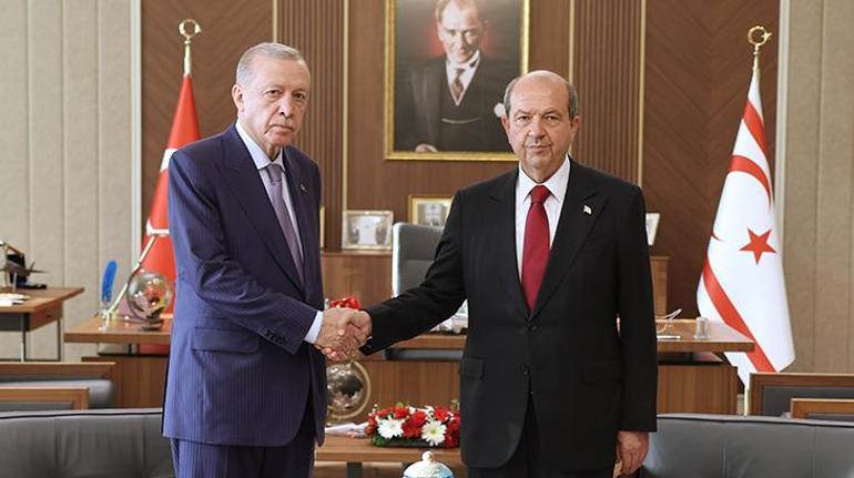 Erdoğan, 20 Temmuz Barış ve Özgürlük Bayramı törenleri öncesinde KKTC Cumhurbaşkanlığı'nda Tatar ile görüştü.