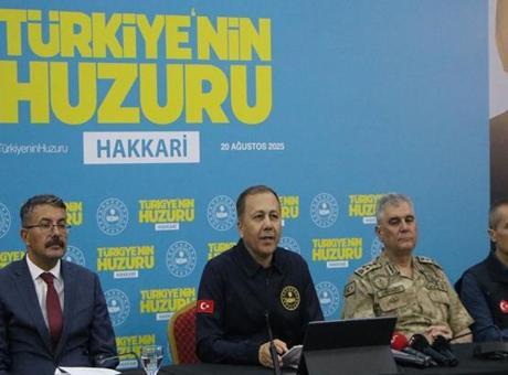 İçişleri Bakanı Ali Yerlikaya, "Biz, sokaklarımızın, mahallelerimizin, ilçe ve şehirlerimizin huzur ve güvenliği için varız. Huzur varsa her şey mümkündür. Yatırım da üretim de. Hakkari'nin huzuru, Türkiye'nin huzurudur." dedi.
