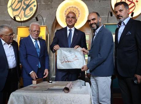 Ardından tarihi Gevher Nesibe Tıp Tarihi Müzesi'ndeki "Adil-i Mutlak Hat Sergisi"ni ziyaret eden Ersoy ve beraberindeki protokol üyeleri, buradaki eserleri inceledi.