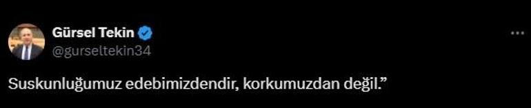 İstanbul 45. Asliye Hukuk Mahkemesince CHP İstanbul İl Yönetimine görevlendirilen Gürsel Tekin sosyal medya hesabından yaptığı paylaşımda "Suskunluğumuz edebimizdendir, korkumuzdan değil." ifadelerine yer verdi.