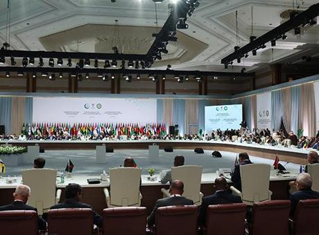 Zirveye, Cumhurbaşkanı Erdoğan'ın yanı sıra İİT ile Arap Birliği üyesi ülkelerin devlet ve hükümet başkanları katıldı.