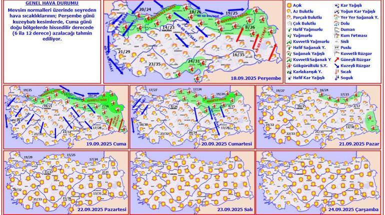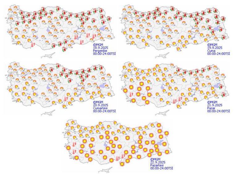 Meteoroloji Genel Müdürlüğü tarafından yapılan tahminlere göre: Ülkemizin kuzey kesimlerinin parçalı, yer yer çok bulutlu, Batı Karadeniz ile Kırklareli, Kocaeli, Sakarya, Yalova, Bursa, Trabzon, Rize ve Artvin çevreleri ile İstanbul'un kuzey kesimlerinin yerel olmak üzere sağanak ve gök gürültülü sağanak yağışlı, diğer yerlerin az bulutlu ve açık geçeceği tahmin ediliyor.