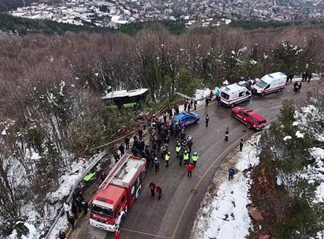 Jandarma ekipleri bölgede güvenlik önlemleri alırken, kazanın meydana geldiği bölge dron ile havadan görüntülendi. Yaralılar, ekiplerin olay yerindeki ilk müdahalesinin ardından Sakarya ve Kocaeli'deki hastanelere sevk edildi.