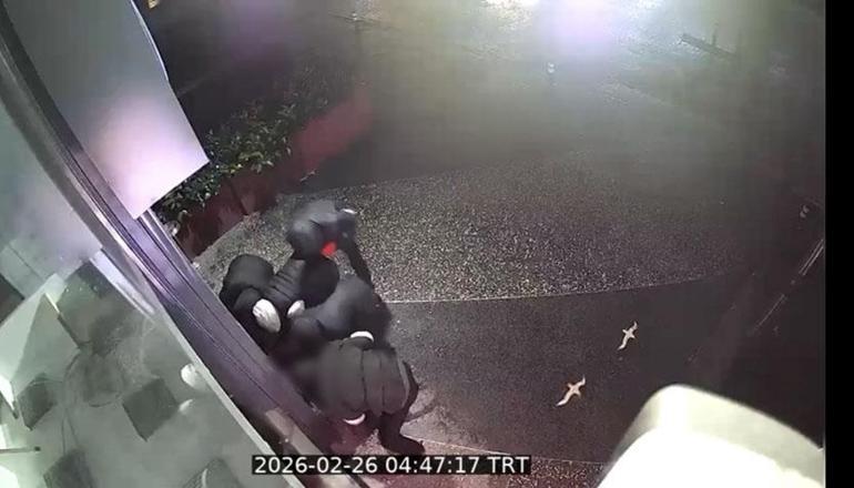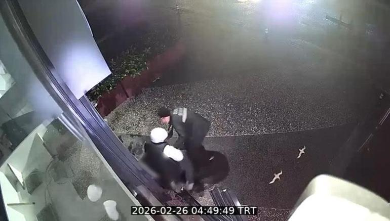 Polis şüphelilerin peşine düşerken, iş yeri sahibi Ertan Y.'nin (34), geç bildirim de bulunduğu için alarm şirketinden ve şüphelilerden şikayetçi olduğu öğrenildi. Soygun anı ve güvenlik görevlisinin şüphelilerle karşı karşıya kaldığı anlar güvenlik kamerasına yansıdı.