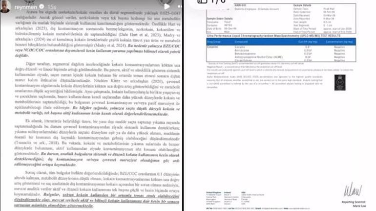 Reynmen yeniden test yaptırıp, sonuçlarını paylaştı. Ünlü isim, hem Türkiye'de hem de yurt dışında yaptırdığı uyuşturucu testi sonuçlarının negatif çıktığını açıkladı.