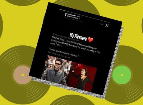 Bazen iki sanatçı arasında uzaktan tanıklık ettiğimiz tek bir etkileşim dahi havamızı değiştirmeye ve alışık olduğumuz sanata dair inancımızı güçlendirmeye yetiyor, ne ilginç. Nükhet Duru katıldığı bir programda The Weeknd'in 2015 yılında yayınlanan Beauty Behind the Madness albümündeki Often adlı parçasından sürekli olarak kendisine telif ödemesi geldiğini ifade ederek şarkı sayesinde hatrı sayılır bir meblağ kazandığını dile getirdi. Sosyal medyada yayılan bulan bu sözleri The Weeknd, Instagram hesabından bir story ile paylaştı ve “Benim için zevk” ifadesini kullandı.