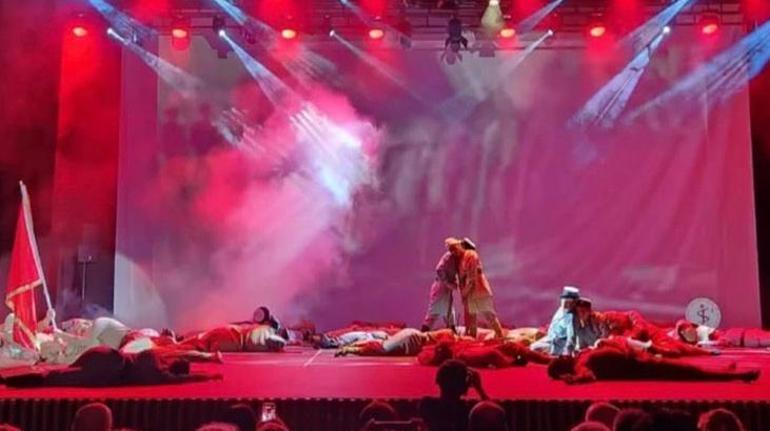 Savaşın kazanılması da müzik ve tiyatral anlatımla sahneye taşınırken, savaş sahneleri dans ve koreografilerle canlandırıldı.
