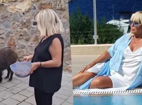 Bodrum’da ilginç anlar: Safiye Soyman domuzu elleriyle besledi!