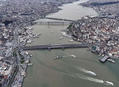 İstanbul'da Cuma gününden beri aralıksız yağan yağmur sonrası dereler ve kanalizasyondan gelen çamurlu sular Haliç'i ve boğazın bir bölümünü kahverengiye bürüdü. Haliç'teki renk değişimi havadan görüntülendi.